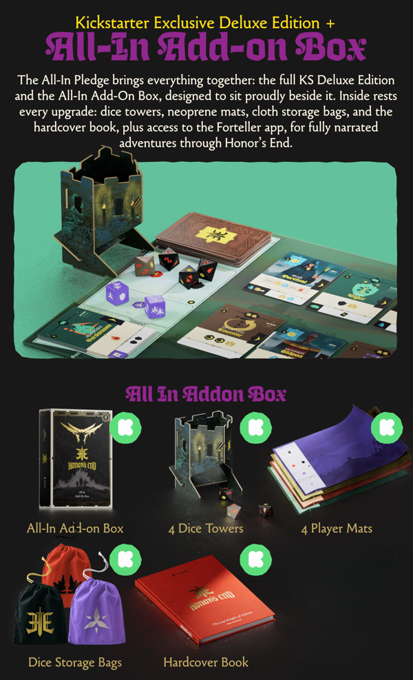 Honor's End is a 1–4 player cooperative deckbuilding adventure set in a medieval world overshadowed by a mysterious truth. You can play it as a standalone session or as part of an episodic campaign that gradually unlocks new content and challenges.